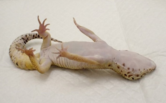 | トカゲ | 背骨・下顎骨・四肢の骨の変形、歩行異常 低カルシウム血症による全身性の痙攣・神経症状、「ピアノを弾いているような」部分的な指の痙攣 総排泄孔脱、卵管脱、卵塞、腎障害、発育不良、病的骨折 |