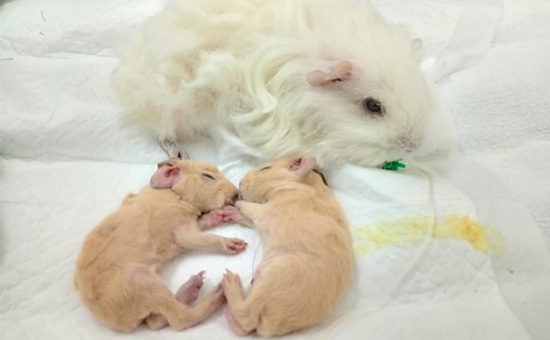 モルモットは他のげっ歯類やウサギに比べて難産を起こしやすい動物です。出産時の胎仔の大きさ、骨盤腔の狭さ、特徴的な恥骨結合などが原因とされています。