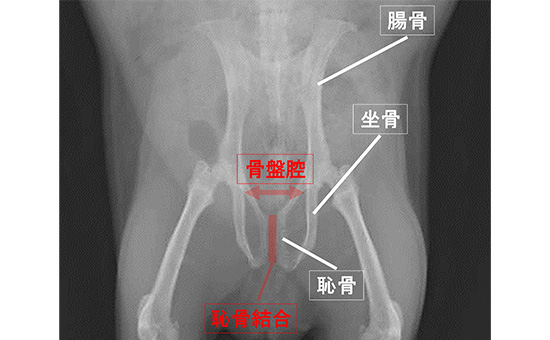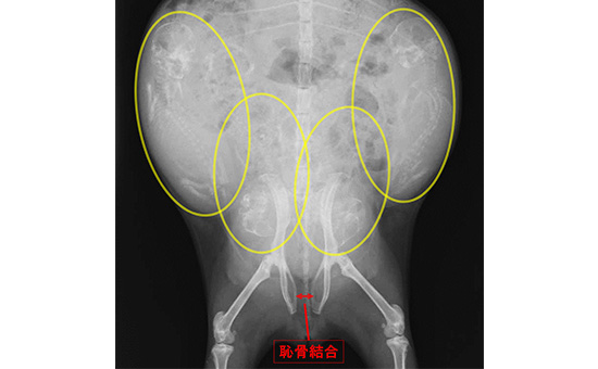 | レントゲン検査 | 胎仔の有無、胎仔の数および恥骨結合の拡がり具合の確認 |