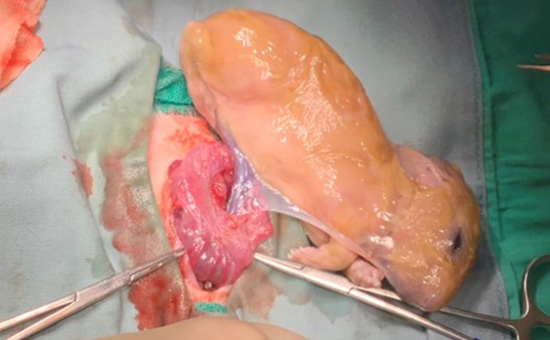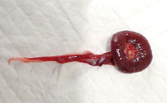 通常、生後7~8ヵ月齢までに妊娠したモルモットはリラキシンというホルモンの分泌によって、出産10日前頃に恥骨結合が拡がり始めます。恥骨結合は出産48時間以内では1.5㎝、分娩時には2.5㎝まで拡がります。生後7~8カ月齢までに未経産の雌では、恥骨結合がそれ以降に緩むことはありません。このため、モルモットの難産の多くは生後8~12ヵ月齢以降に初めて妊娠した雌に発生します。