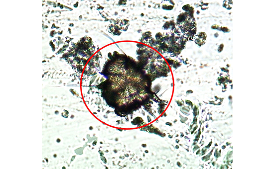 皮膚掻把検査(皮膚表層を削って顕微鏡で観察する)で虫体や虫卵を検出して診断します。しかし、掻痒感が強く発作を起こす可能性があるため、典型的な病変や症状から本疾患を疑い治療的診断として駆虫薬を投与する場合もあります。